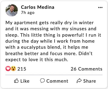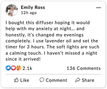 “This diffuser completely transformed my living room. The flame effect makes it so cozy and relaxing—worth every penny!”