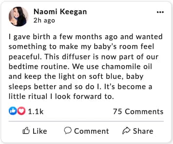 “I use it every night before bed. The air feels softer, the scent is calming, and the glow is beautiful.”